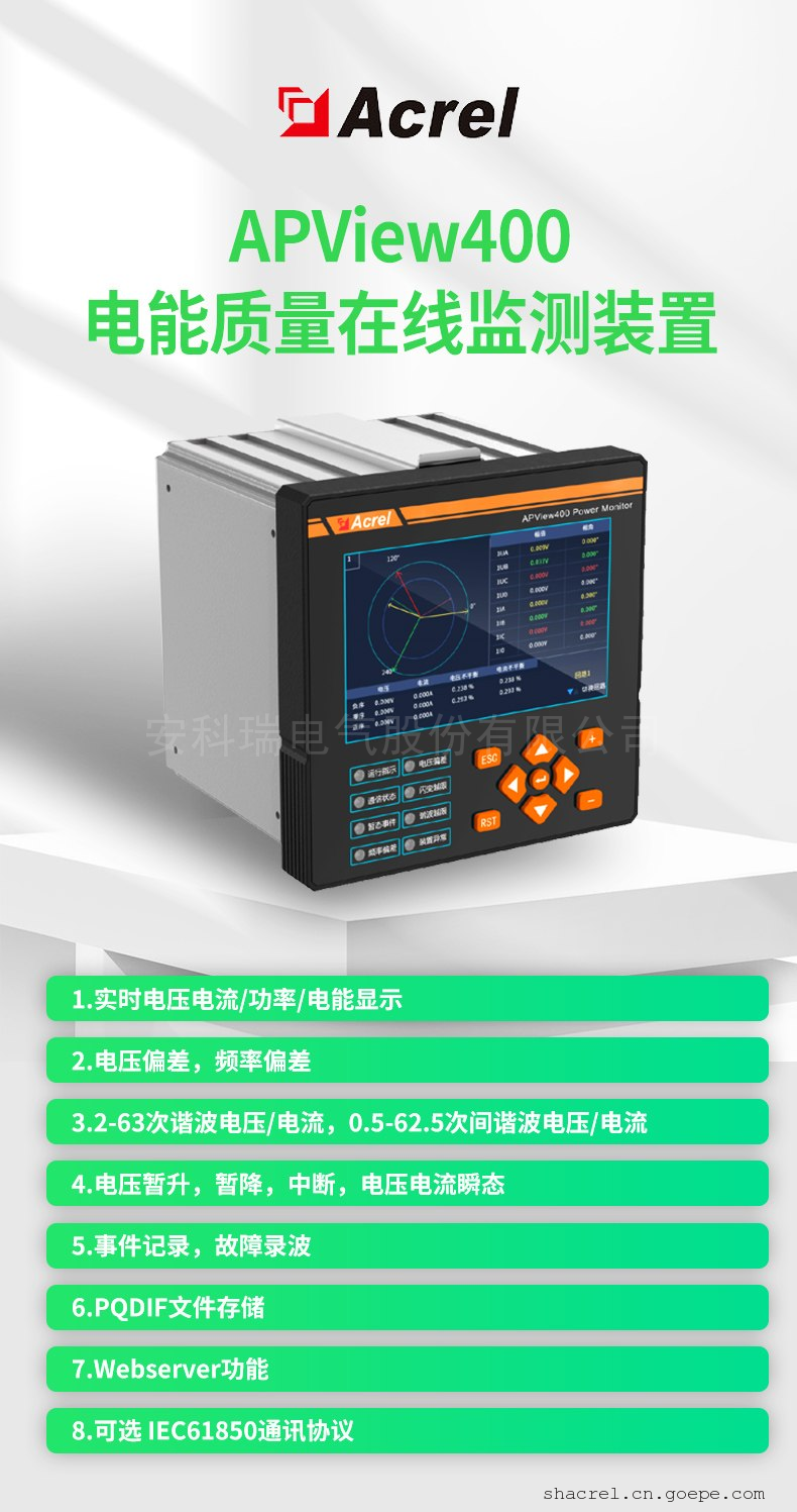 - 當(dāng)前位置:安科瑞電氣股份有限公司 > 產(chǎn)品中心 > 電能質(zhì)量監(jiān)測(cè)與治理 > 安科瑞電能質(zhì)量監(jiān)測(cè)儀諧波分析閃變監(jiān)測(cè)事件記錄APView350